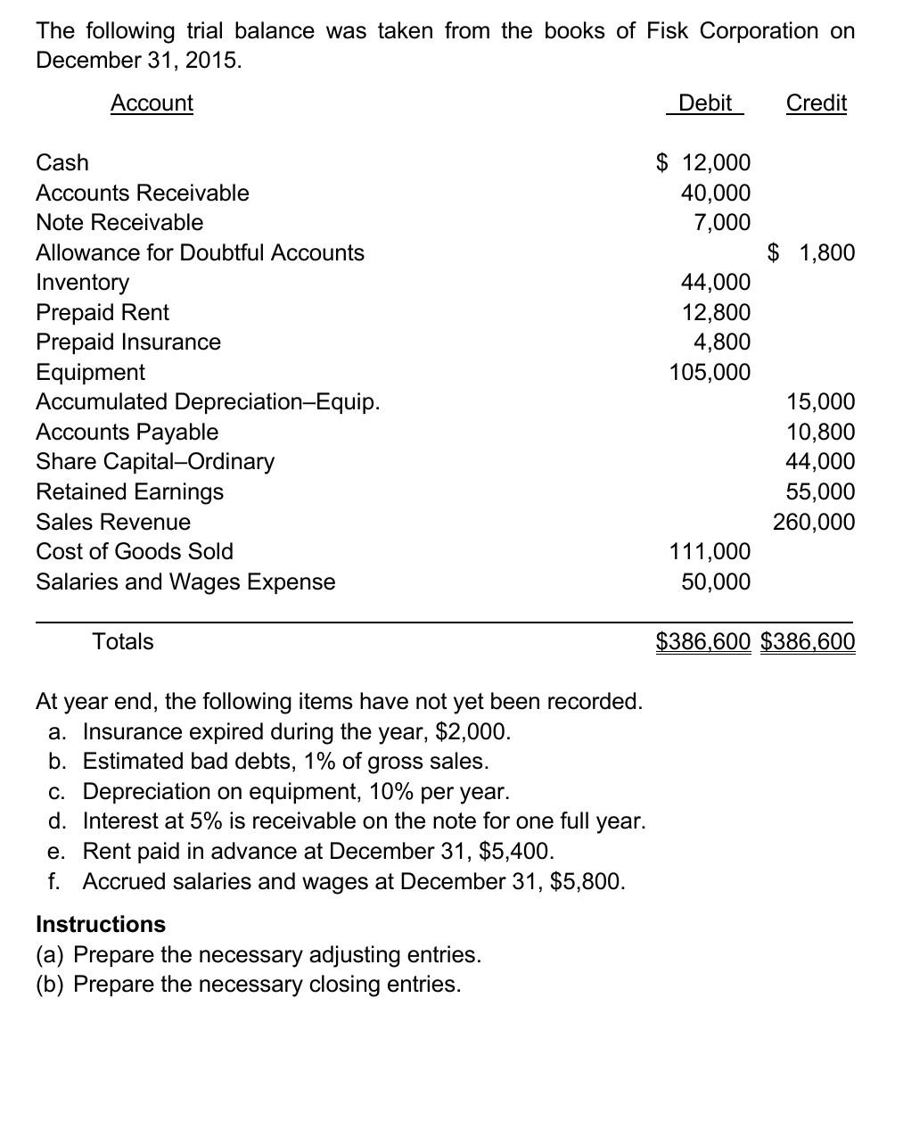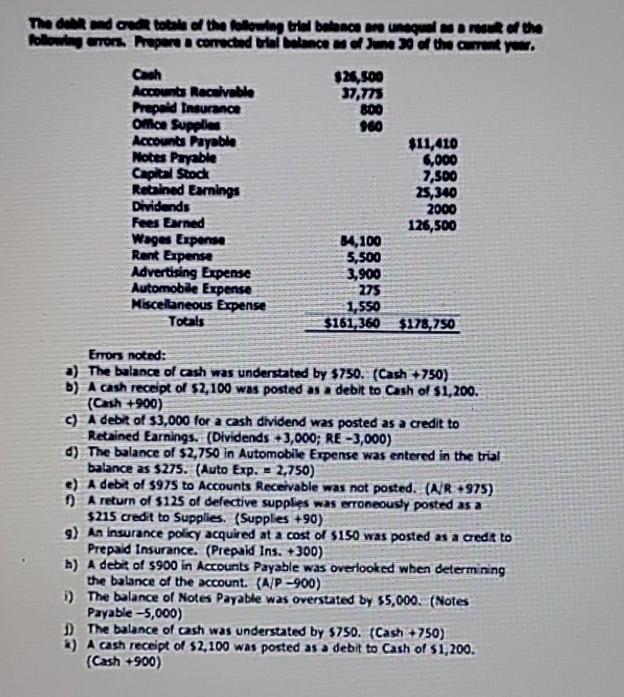 Solved The Following Trial Balance Was Taken From The Books Chegg Com