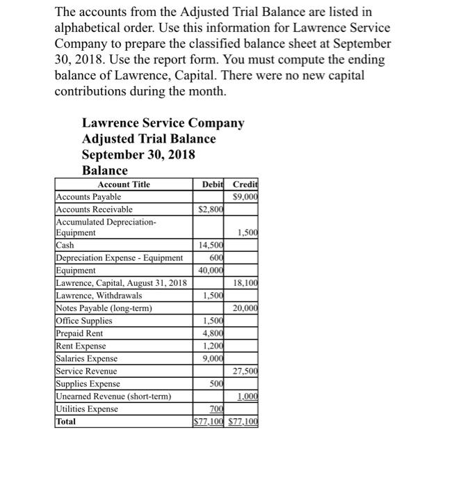 Solved The Accounts From The Adjusted Trial Balance Are Chegg Com